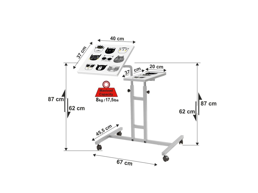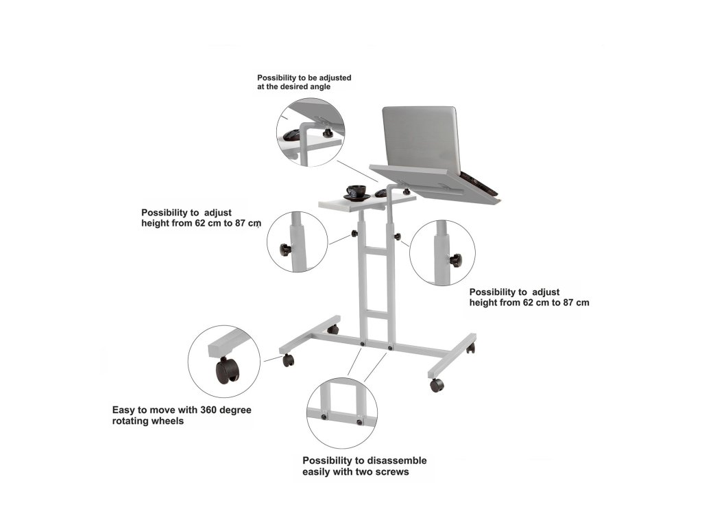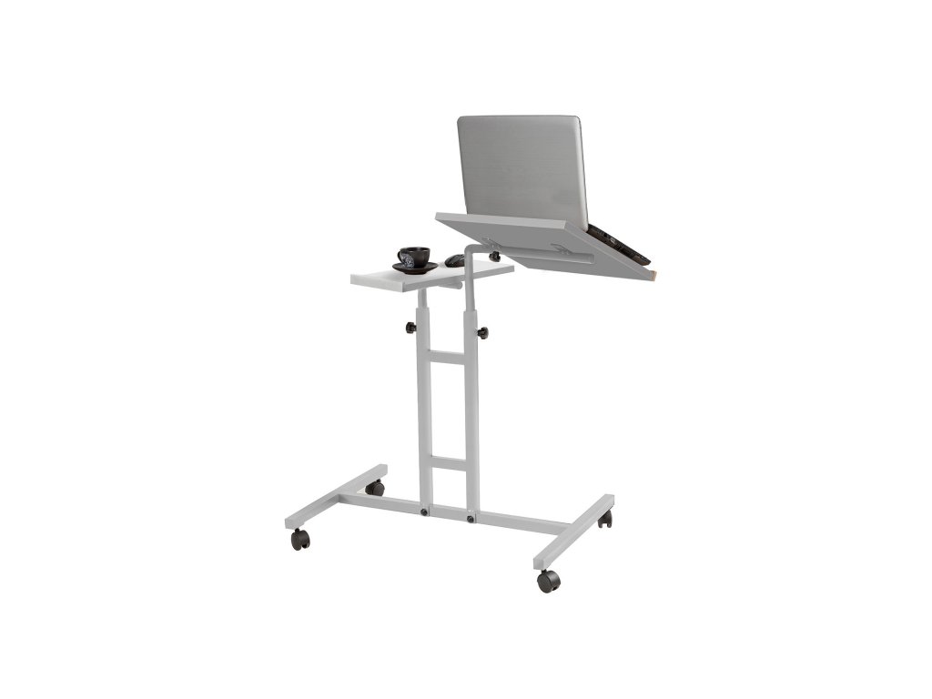 Praktický kovový pojízdný bílý stolek pod notebook GLEN je geniálním řešením pro práci vstoje, vsedě či vleže.