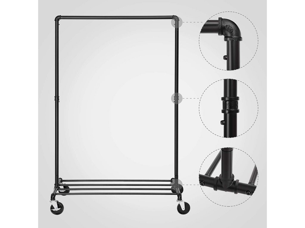 Jednoduchý pojízdný věšák na šaty - štendr, v průmyslovém designu vodovodního potrubí