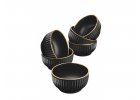 Černá jídelní souprava BLACK se skládá celkem z dvaceti čtyř kusů porcelánových talířů, šálků a misek se zlatým lemem.