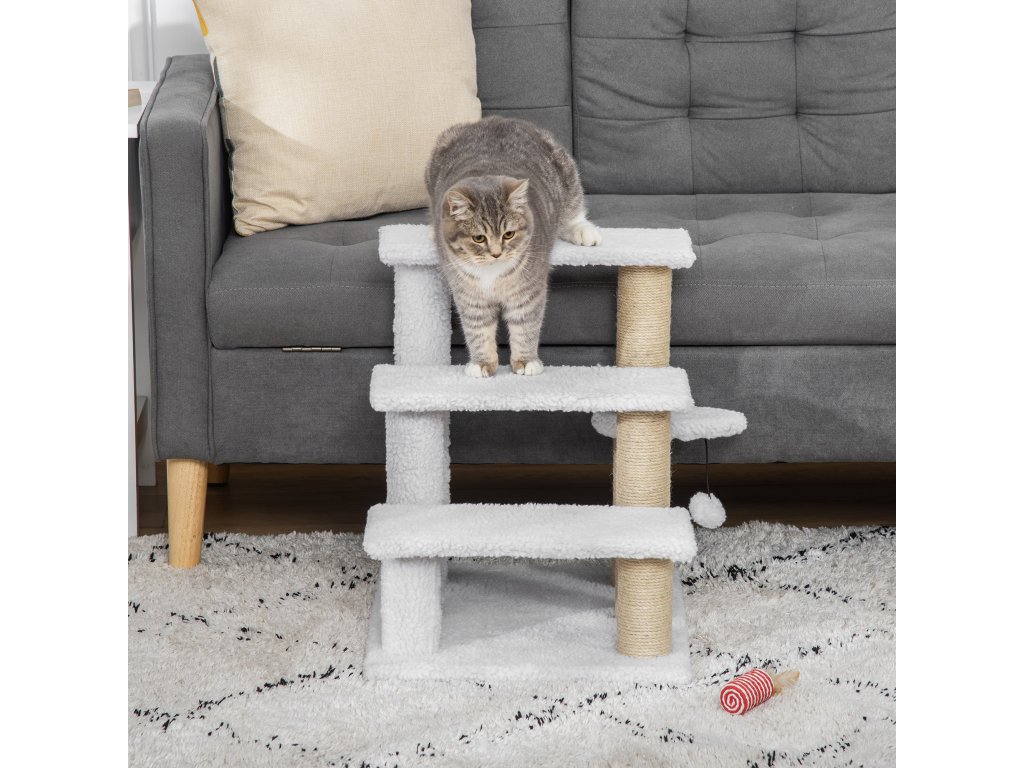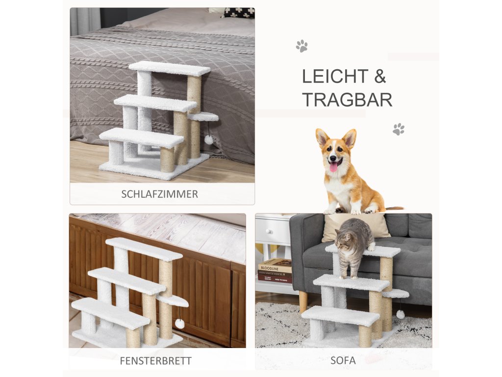 Objevte schodiště pro domácí mazlíčky PawHut, které je speciálně navrženo pro starší domácí mazlíčky a podporuje jejich pohyblivost a zdraví kloubů. Díky čtyřem robustním stupňům usnadňuje dosažení vyšších míst a integrovaný hrací míč poskytuje další zábavu. Je vyrobeno z robustních materiálů a poskytuje vašemu mazlíčkovi bezpečné prostředí, kde může uspokojit svůj přirozený instinkt škrábání. Měkký plyšový potah vybízí k útulnému spánku a poskytuje pohodlí unaveným kloubům. Ideální výrobek pro starostlivé majitele domácích zvířat, kteří chtějí podpořit pohodu svých milovaných společníků.