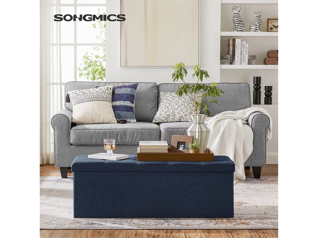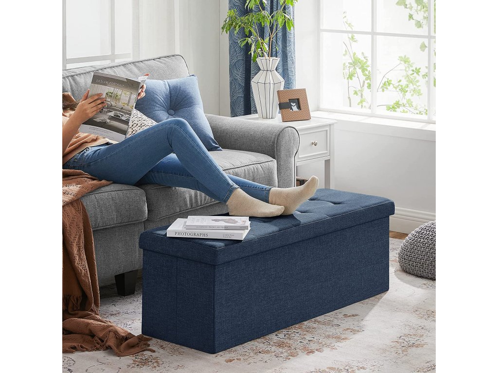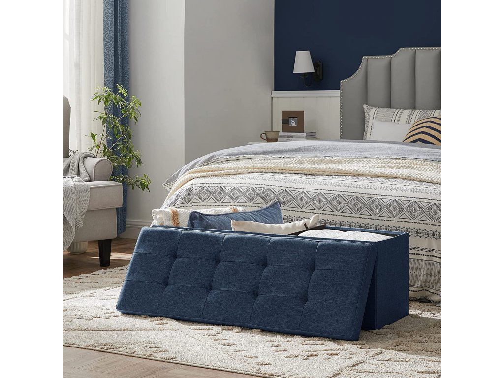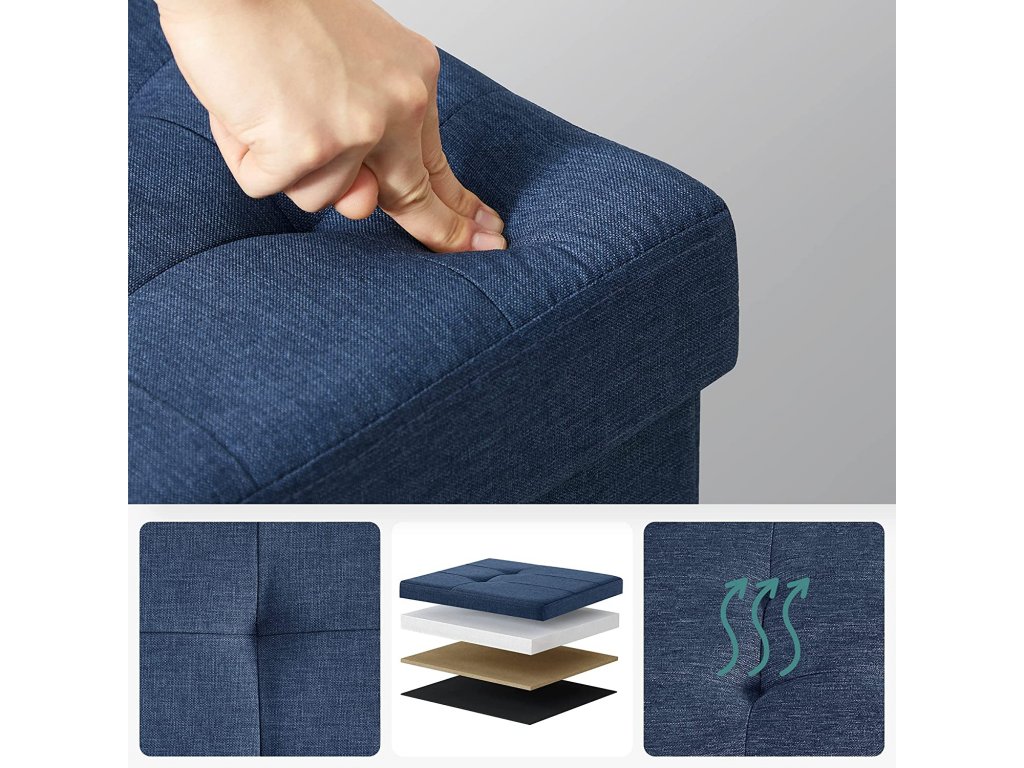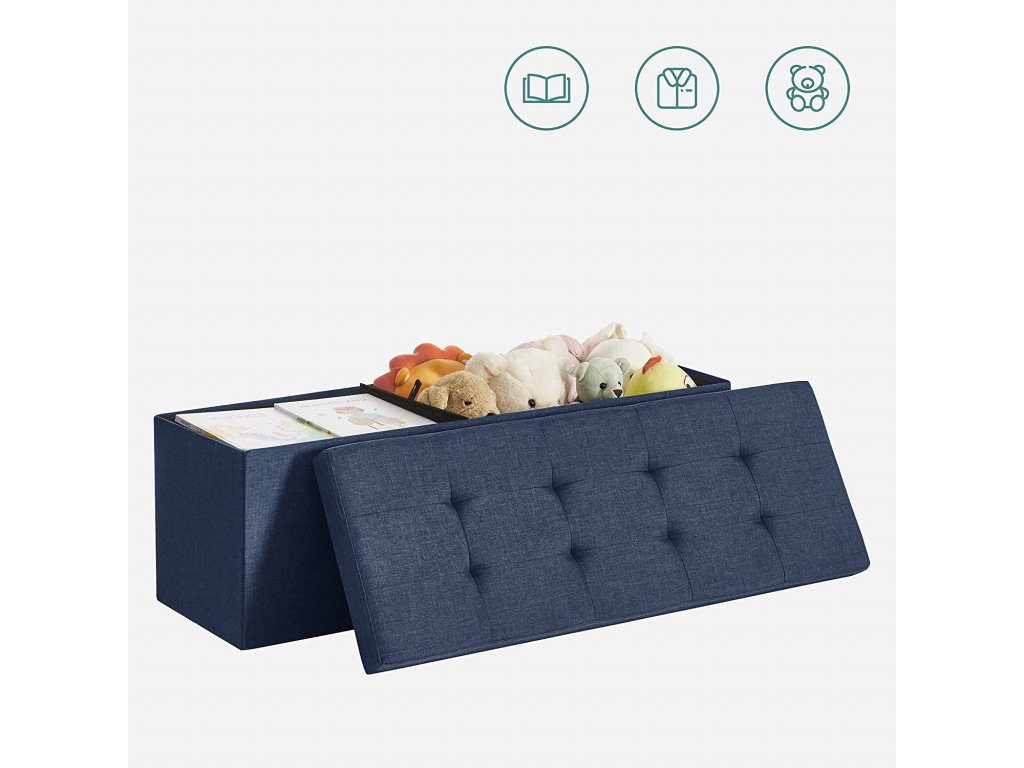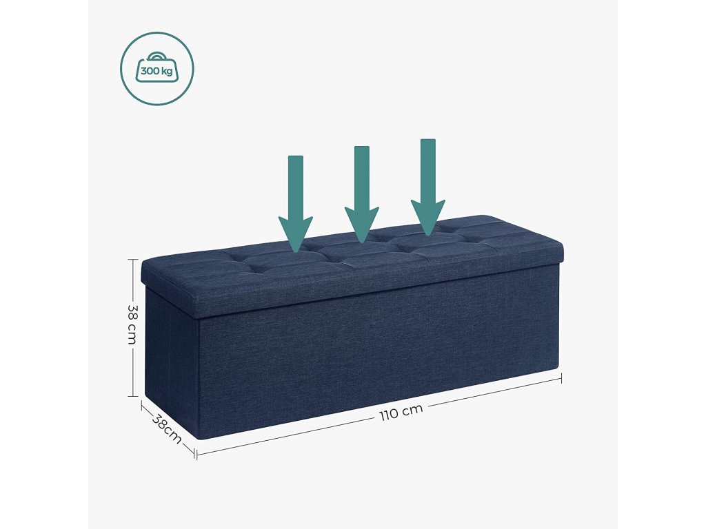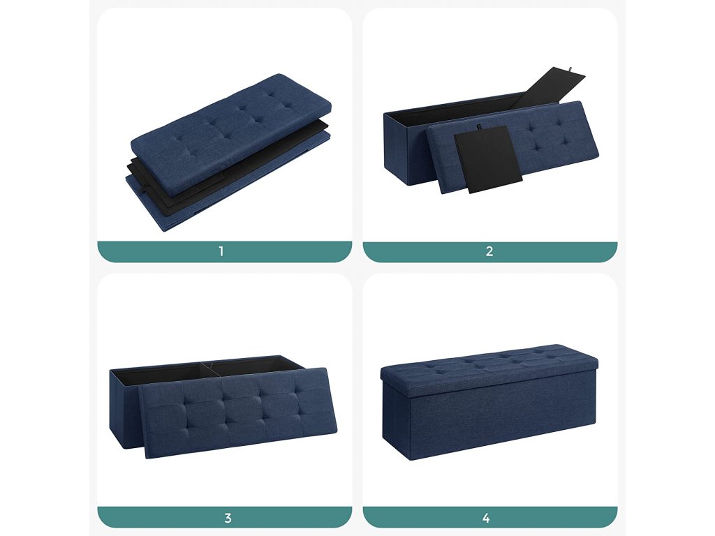 Skládací úložný box s polstrovaným víkem s nosností až 300 Kg je vhodný jako opěrka pro nohy, na sezení i na ukládání pokrývek, polštářů atd.