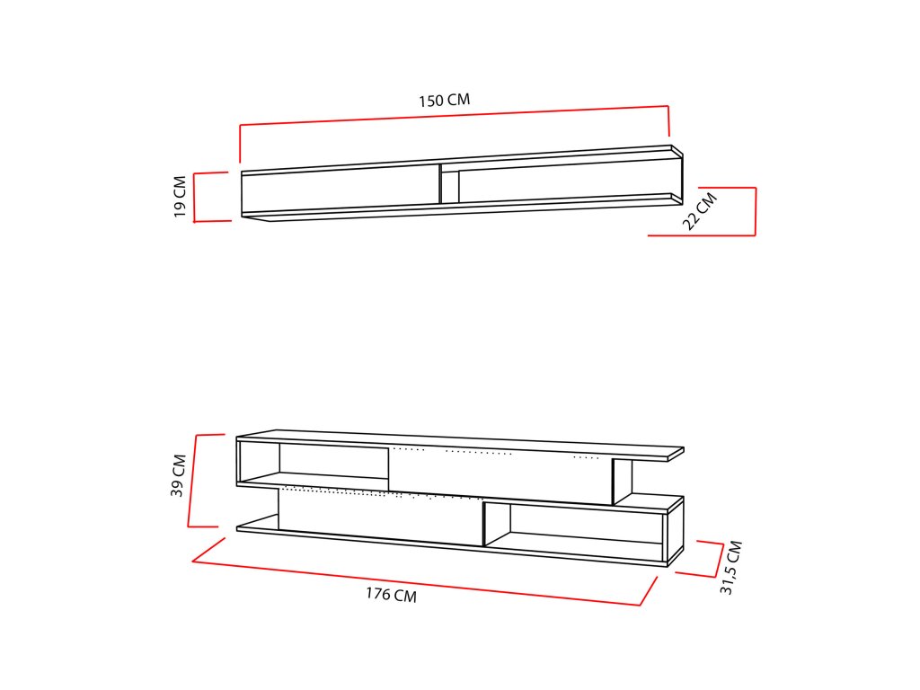 Rozměry TV: Šířka: 176 cm Hloubka: 31,5 cm Výška: 39 cm
