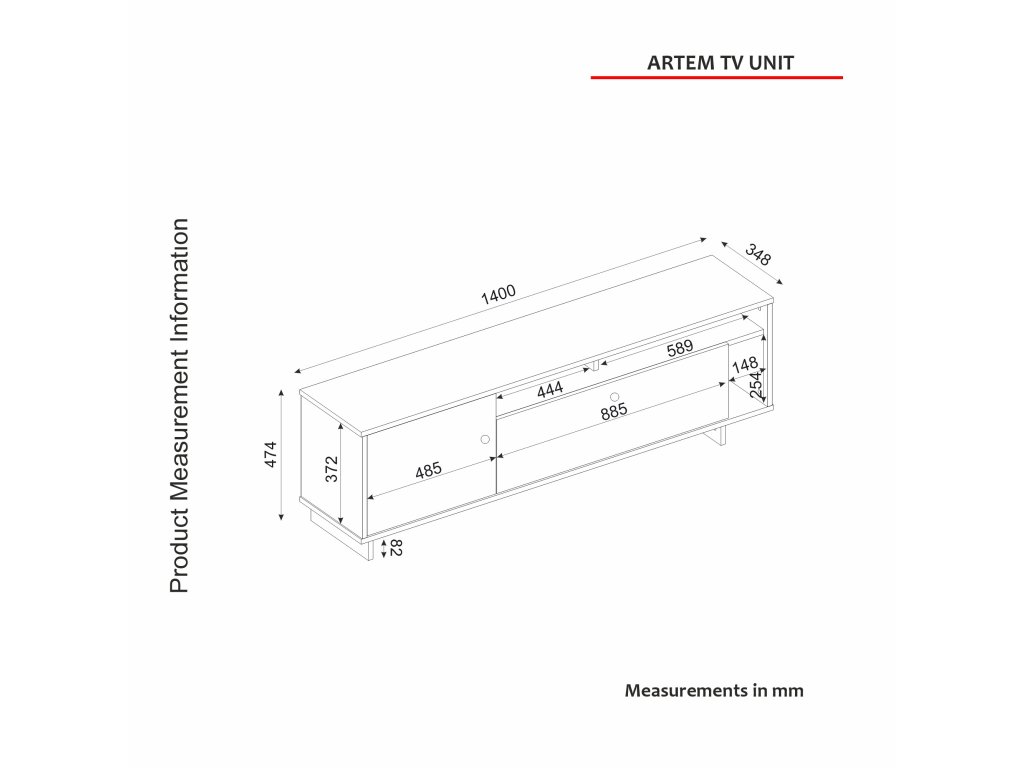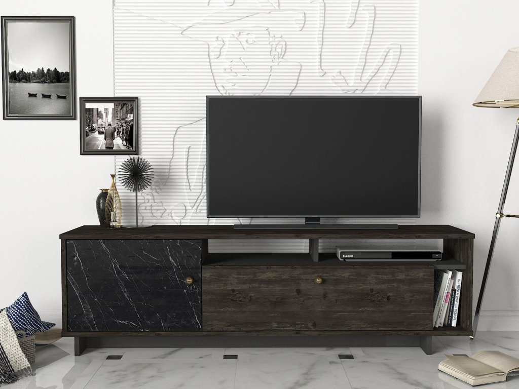 Tmavý televizní stolek ARTEM s uzavřenými poličkami.