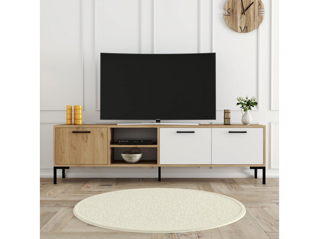 Vkusný televizní stolek AURORA v provedení dub s bílou.
