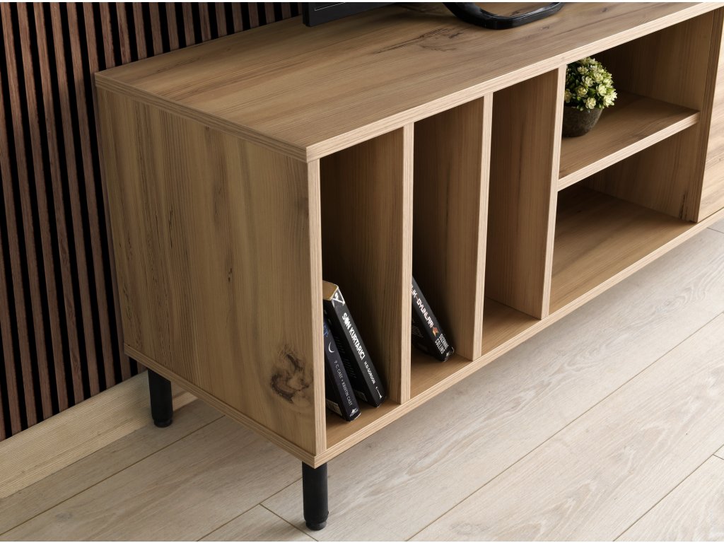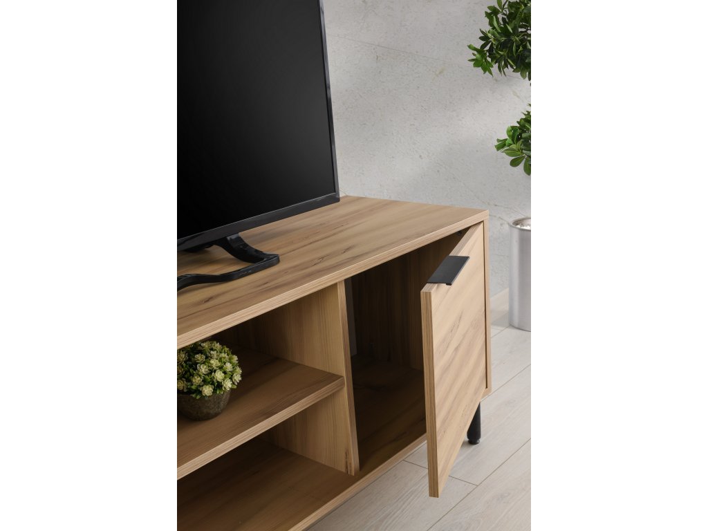 Televizní stolek BODEGAS s otevřeným i zavřeným úložným prostorem, a klasickými dvířky.