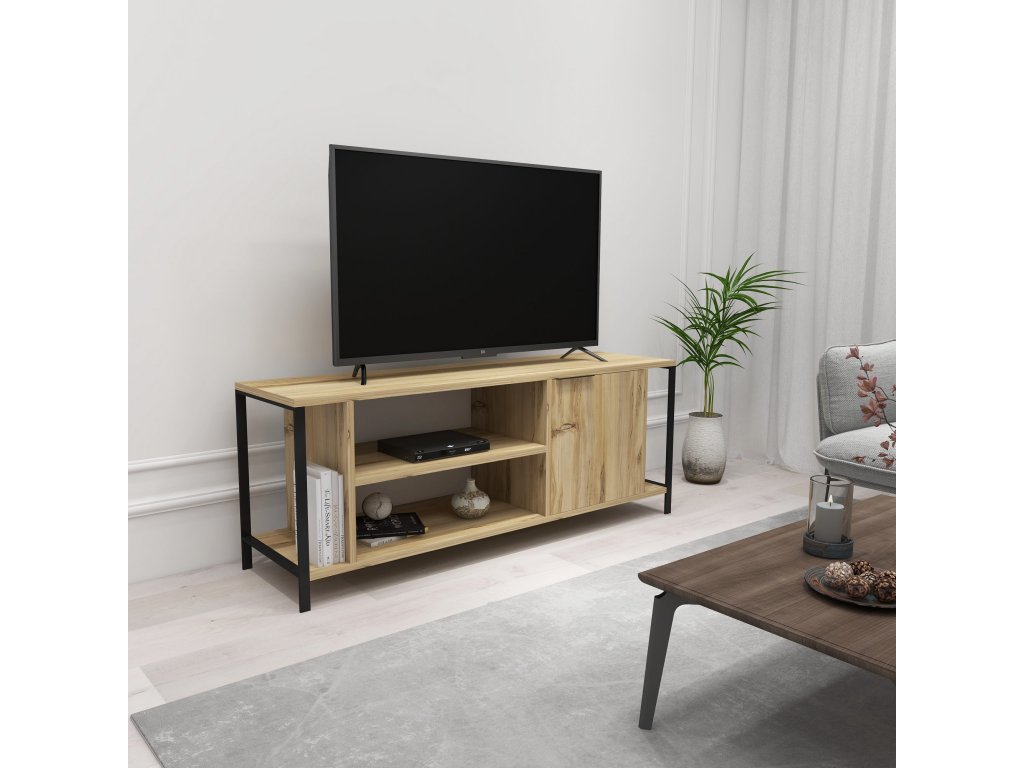 Televizní stolek BOND v dekoru světlého dřeva s policemi.