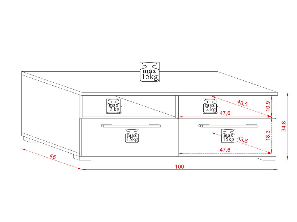 • stolek je vybaven dvěma páry dveří otevíraných směrem dolů a dvěma policemi