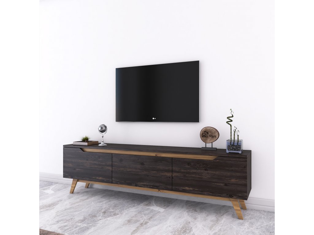 Televizní stolek D1 je vyroben v kombinaci černé barvy a dekoru ořech a nabízí uzavřené úložné prostory.