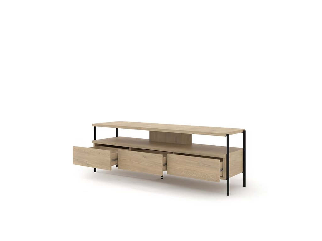 Televizní stolek z kolekce DRAGONFLY má praktické uspořádání. Je vybaven třemi prostornými zásuvkami (ideální pro dálkové ovladače, hry, kabely) a jednou otevřenou policí, která se skvěle hodí pro set-top box, konzoli nebo router.