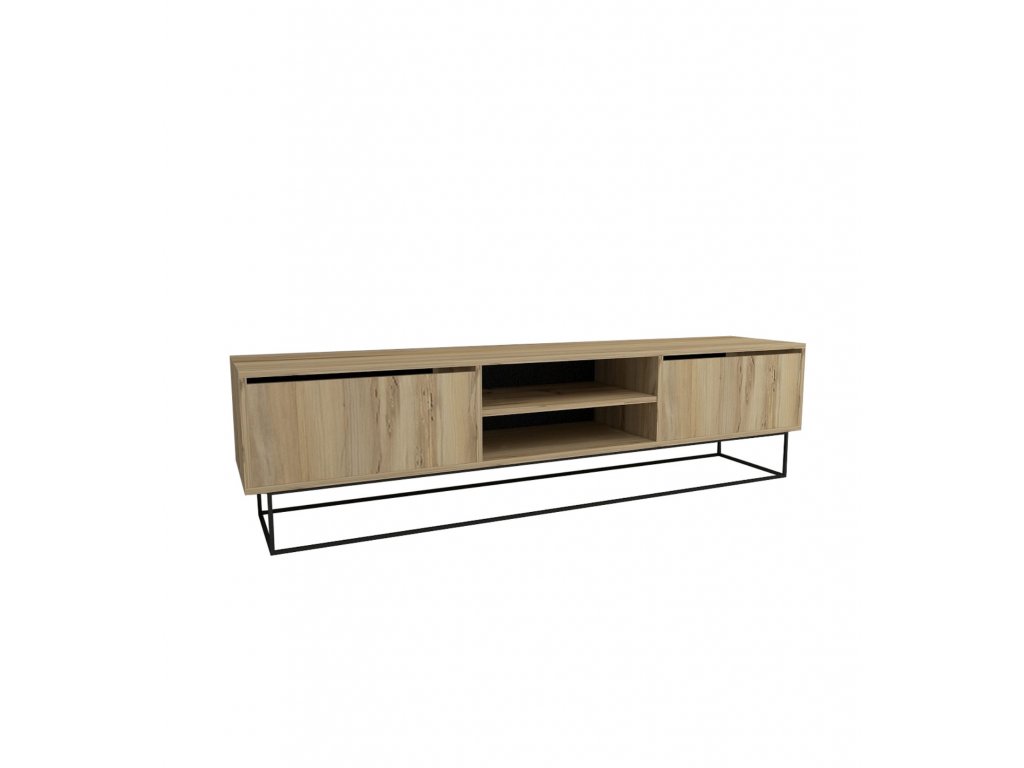 Televizní stolek ESCAPE je vyrobený v dekoru dub a je složen z otevřeného regálu a dvou postranních zásuvek.
