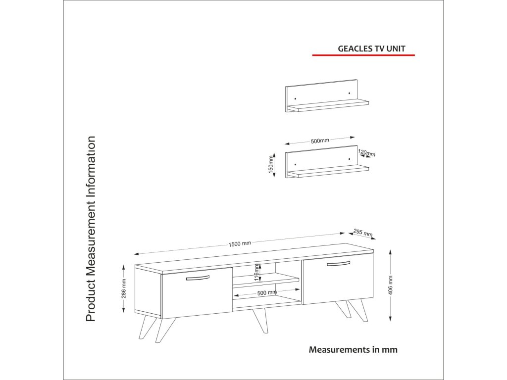 Rozměry TV jednotky: Šířka: 150 cm Hloubka: 29,5 cm Výška: 40,6 cm