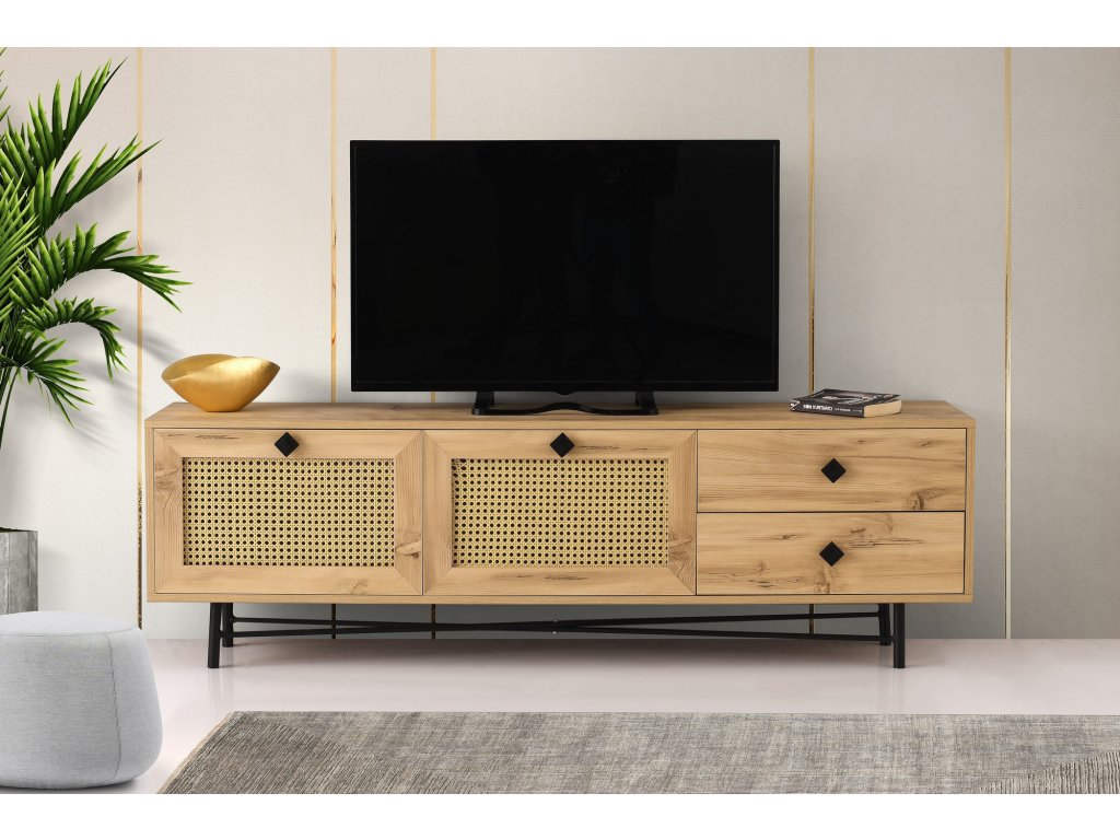 Televizní stolek HAPSIAS vyrobený v přírodním tónu dubového dřeva.