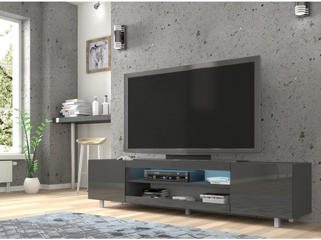 Televizní stolek KATE 189 cm grafitový mat, grafitový lesk