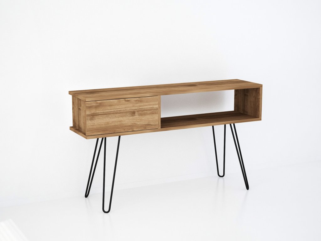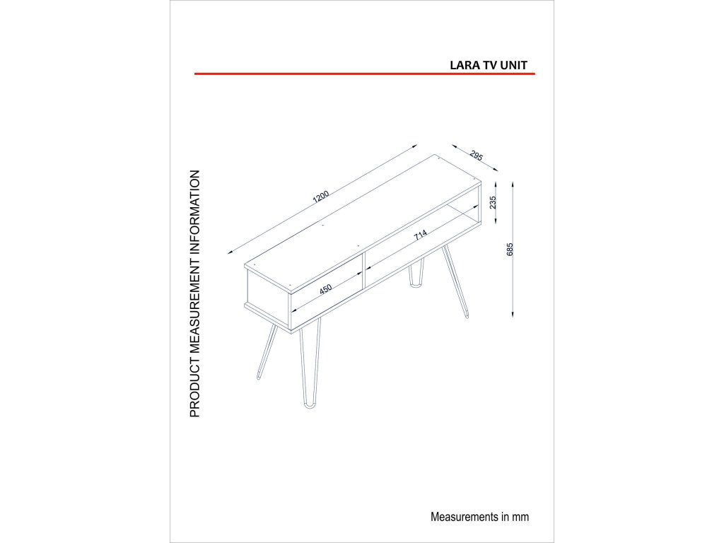 Televizní stolek LARA je vyroben v dekoru ořech, a má vysoké elegantní kovové nohy pro snadný úklid.