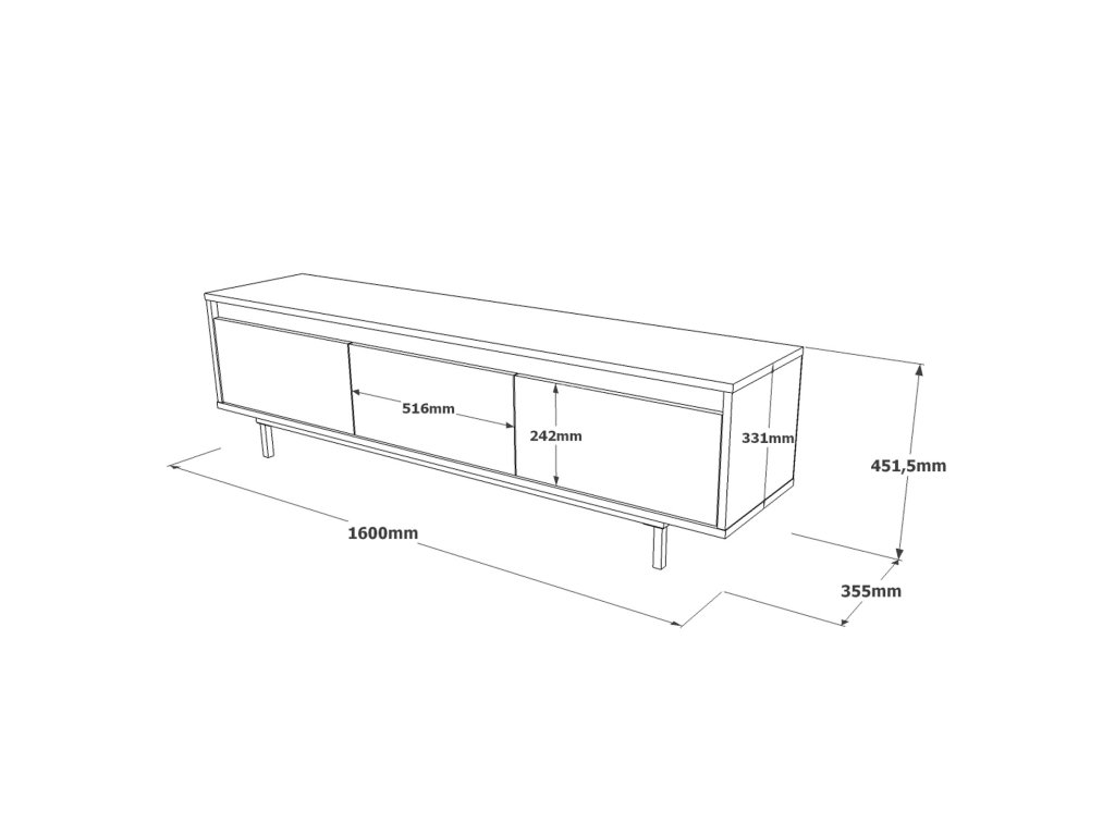 Rozměry televizního stojanu: Šířka: 160 cm Výška: 45,2 cm Hloubka: 35,5 cm
