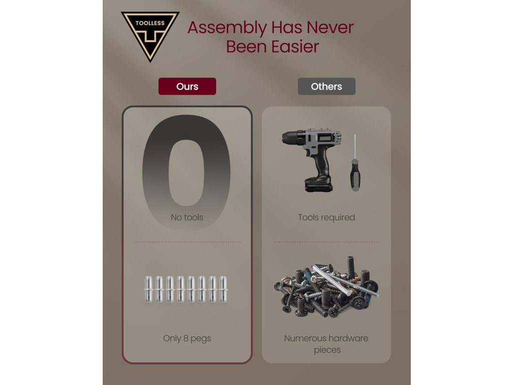 Televizní stojan sestavíte za pouhých 10 minut - bez použití nářadí. Díky vestavěným zámkovým konektorům se panely jednoduše zaklapnou. Dejte sbohem hodinám zdlouhavé montáže nebo tápání s četným příslušenstvím!
