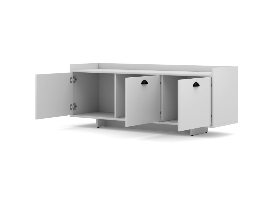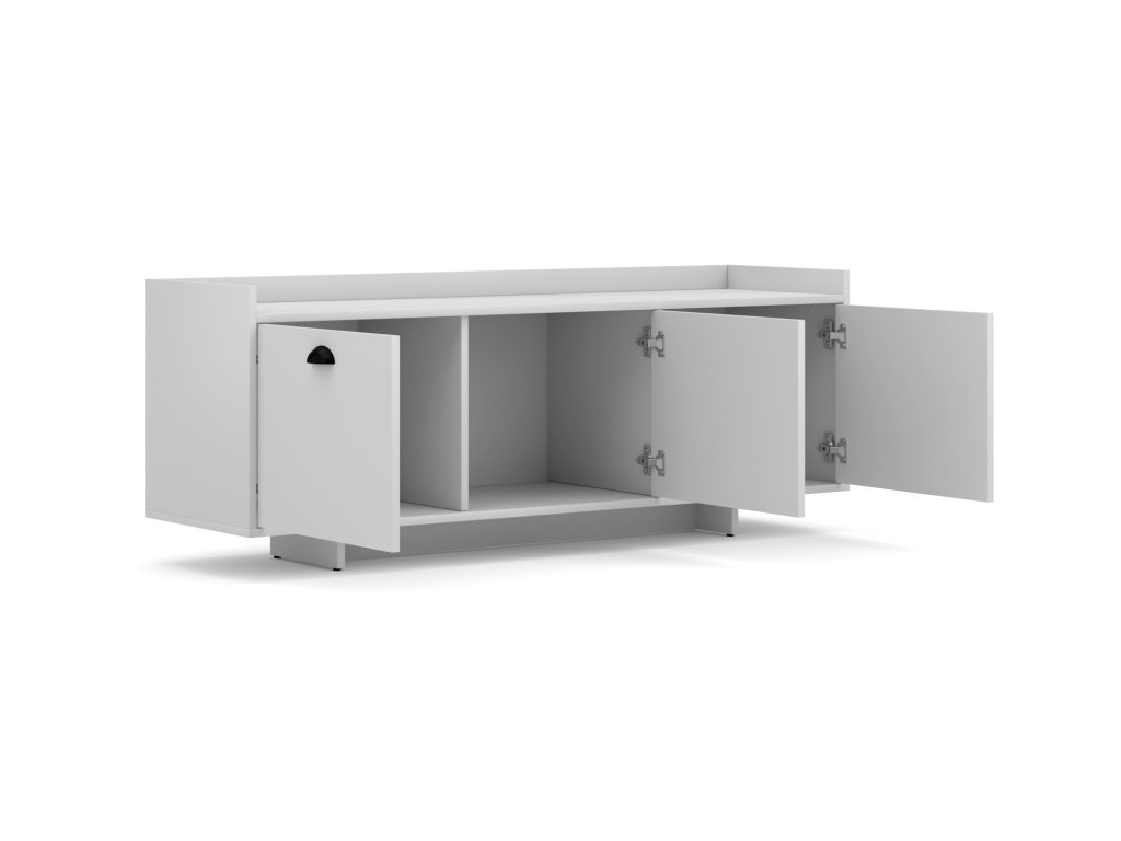Jedinečným prvkem této TV skříňky jsou stylové úchyty ve tvaru mušle a směrem nahoru vystupující tělo. Ta kromě zvýšení estetické hodnoty nábytku zlepšuje i jeho funkčnost, takže je možné na něj bezpečně umístit například velkou sbírku desek nebo knih, aniž byste se museli bát, že spadnou dolu.