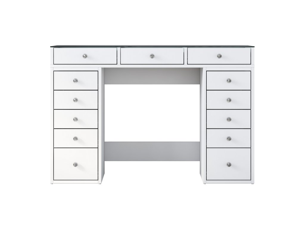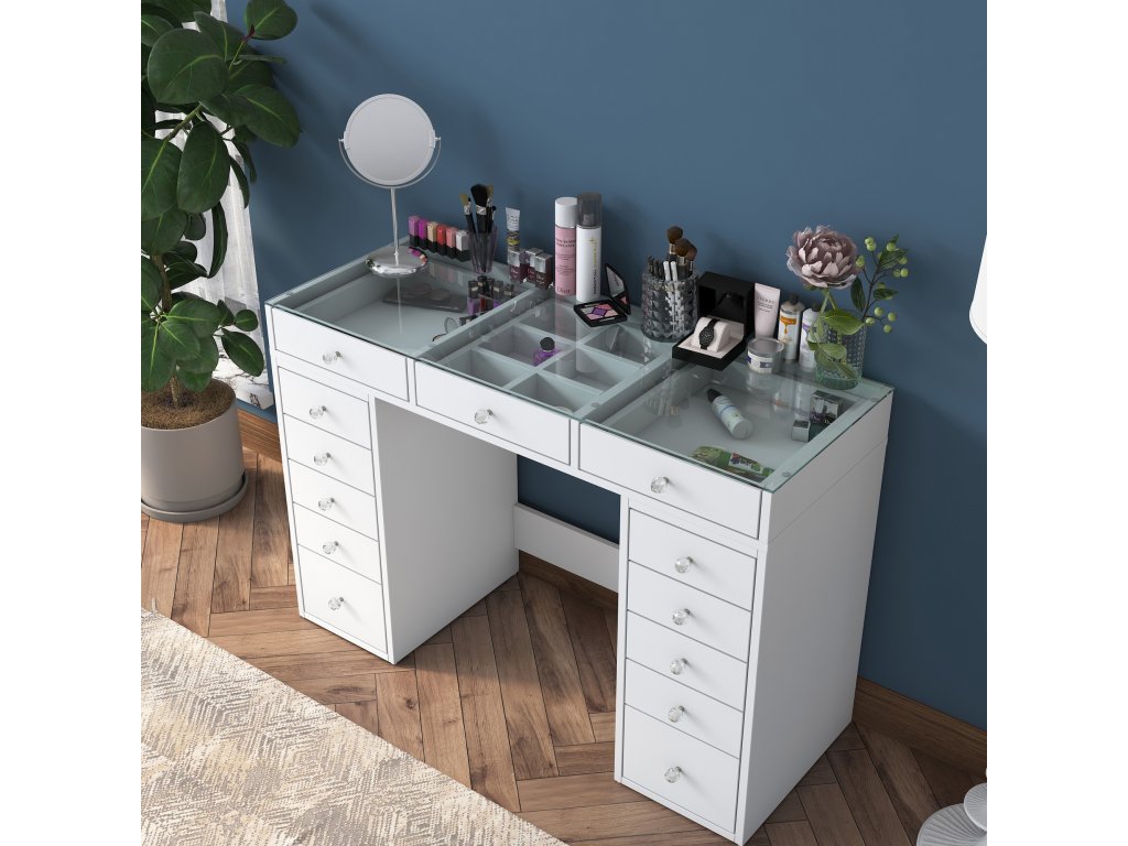 Kosmetický stolek má krásnou bílou barvu, která bez problémů doplní jakýkoli styl interiéru. Ať už je váš prostor moderní, minimalistický nebo klasický, tento stolek s ním bez problémů splyne a podtrhne celkovou estetiku. Jeho čisté linie a elegantní povrchová úprava vyzařují sofistikovanost a vytvářejí uklidňující atmosféru.