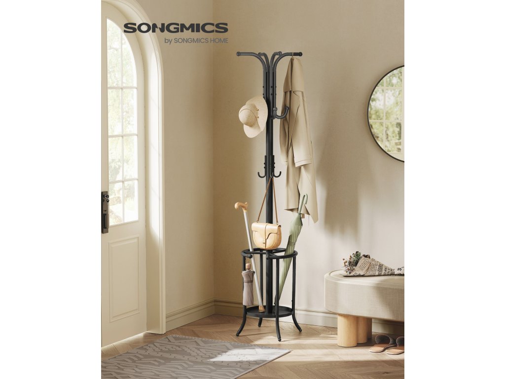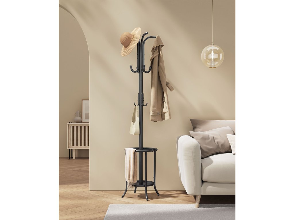 Kovový věšák se stojanem na deštníky černý