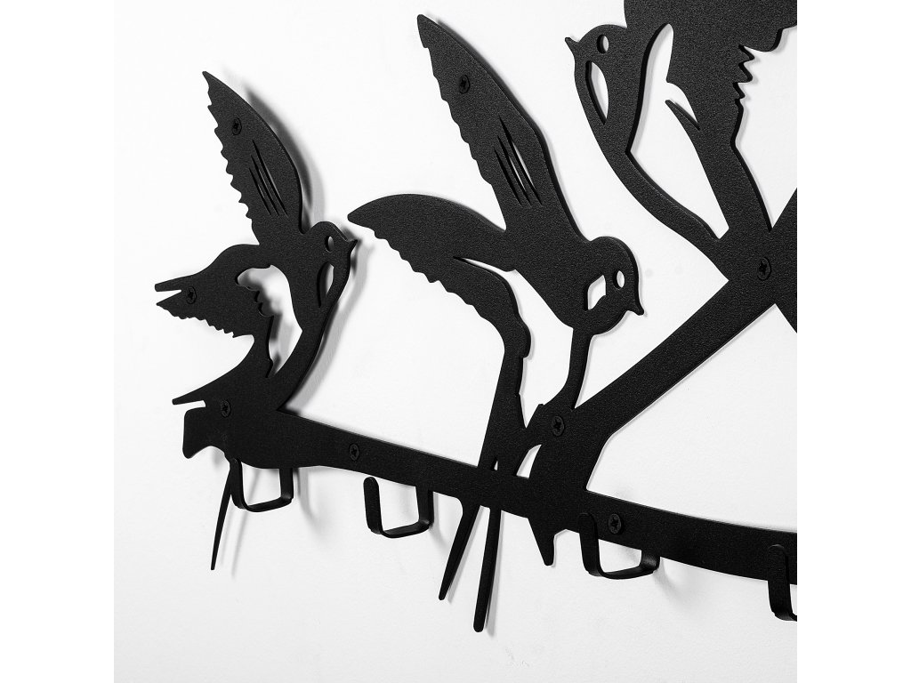Nástěnný věšák ve tvaru větve, na níž je půvabně vyobrazena nejen jedna, ale hned tři vlaštovky, vnese do vašeho obývacího prostoru příval letního vzrušení. Jeho přírodní design jistě upoutá pozornost a stane se dobrým pomocníkem pro vás i vaše hosty.