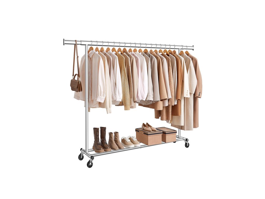 Pojízdný věšák na oděvy s rozšířitelnou konzolí na ramínka a nosností až 150 Kg