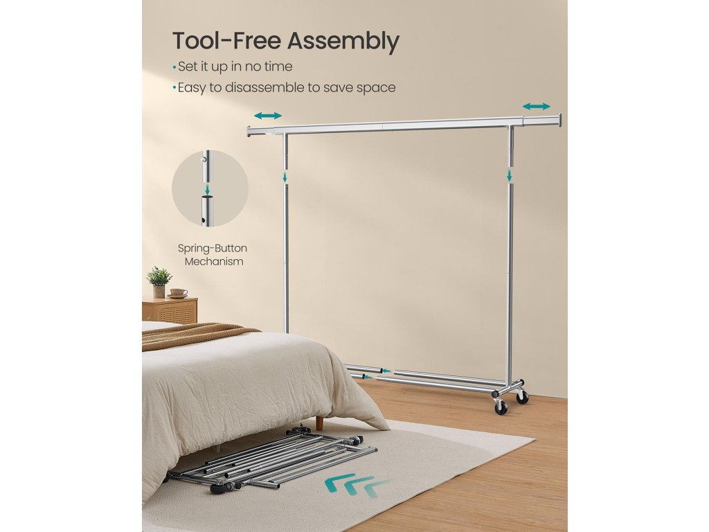 Snadná montáž, není potřeba žádné nářadí - stojan na oblečení lze sestavit v pouhých 3 krocích; pokud jej nepoužíváte, můžete jej rychle demontovat a uložit pod postel nebo do rohu, abyste ušetřili místo