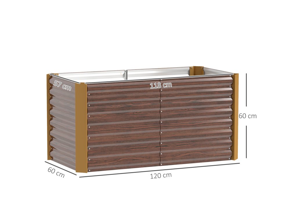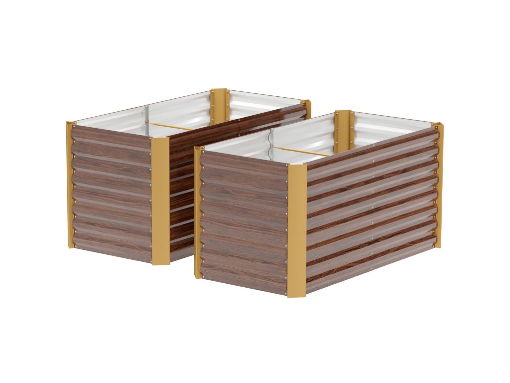 Sada 2 vyvýšených záhonů z pozinkované oceli 120 x 60 x 60 cm hnědá