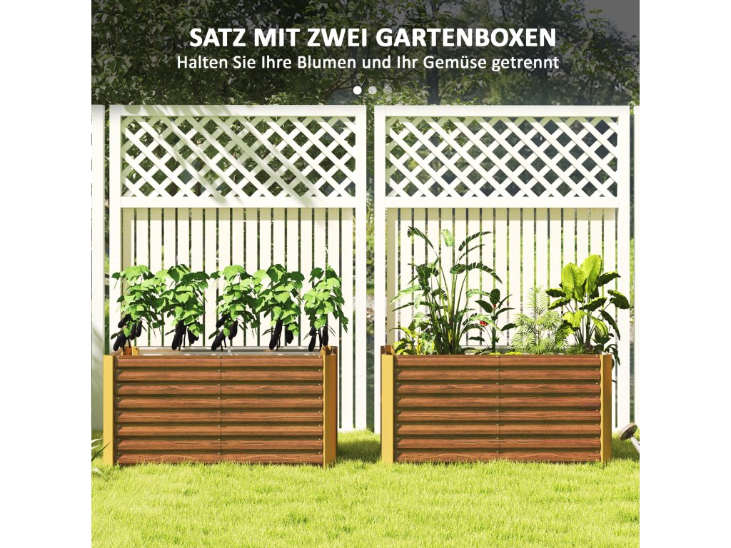 Proměňte svou zahradu v zelenou oázu díky sadě vyvýšených záhonů Outsunny pro balkon! Tyto dva zeleninové záhony nabízejí mimořádně hlubokou konstrukci, která je ideální pro rostliny s dlouhými kořeny, takže se na nich bude dařit bylinkám, květinám i zelenině. Otevřená základna vyvýšeného bylinkového záhonu zajišťuje přímý kontakt s půdou a zabraňuje zamokření. Tyto truhlíky jsou vyrobeny z práškově lakované pozinkované oceli s ochrannými rohy a vnitřními podpěrnými konzolami a zaručují bezpečný a robustní zahradní ráj.