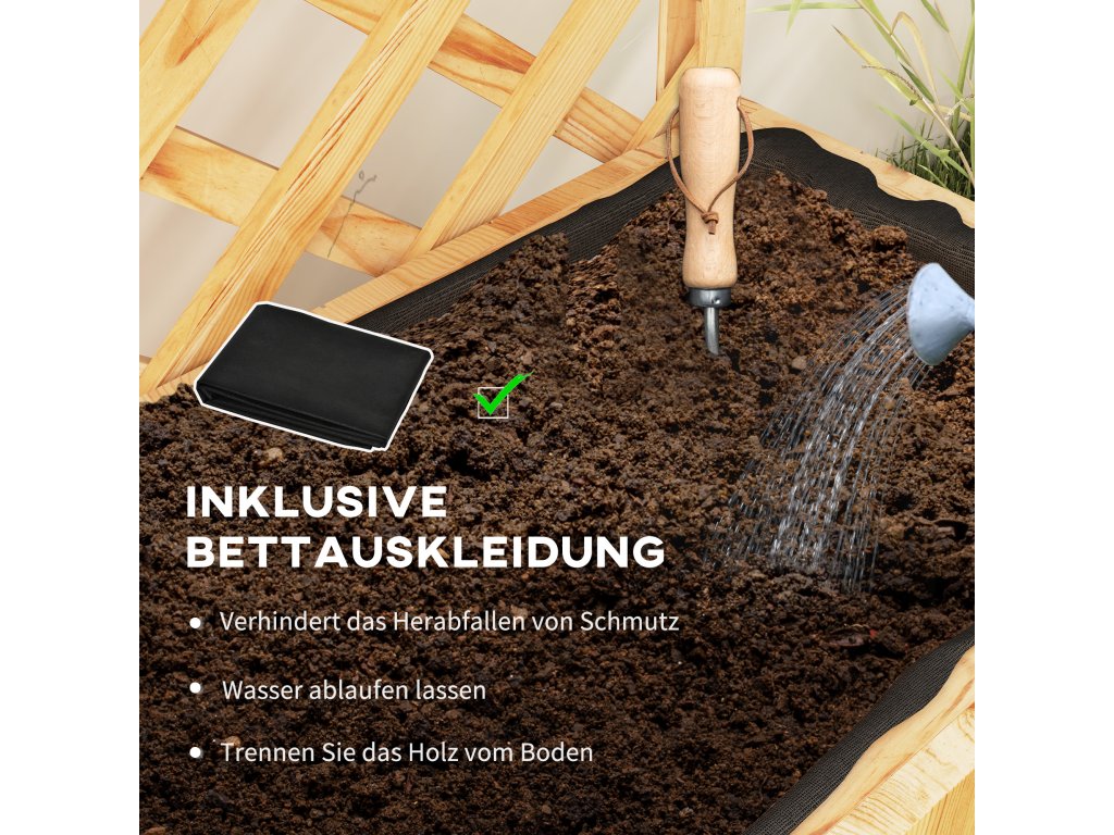 Tento truhlík kombinuje vyvýšený záhon s 147 cm vysokou mříží, která optimálně využívá vertikální prostor a umožňuje pěstovat popínavé a jiné rostliny.
