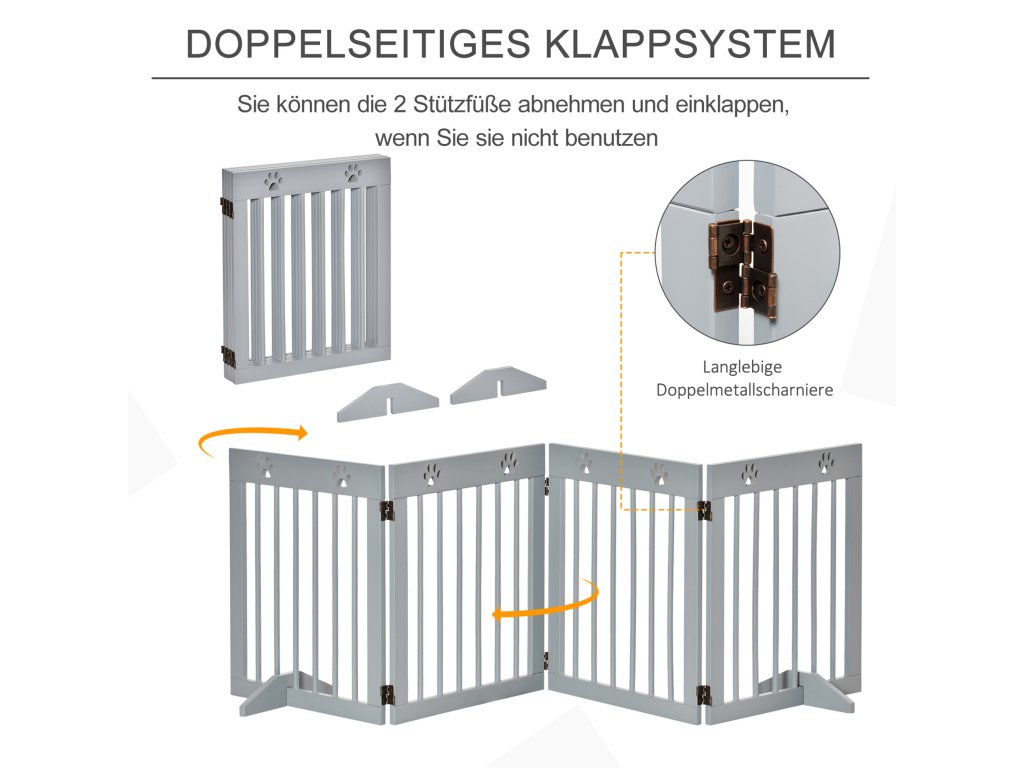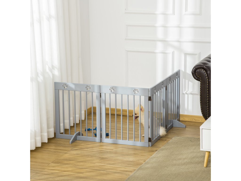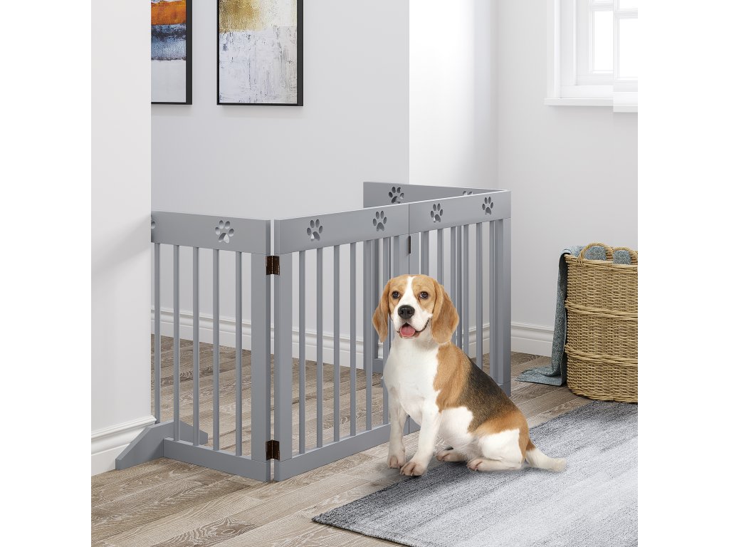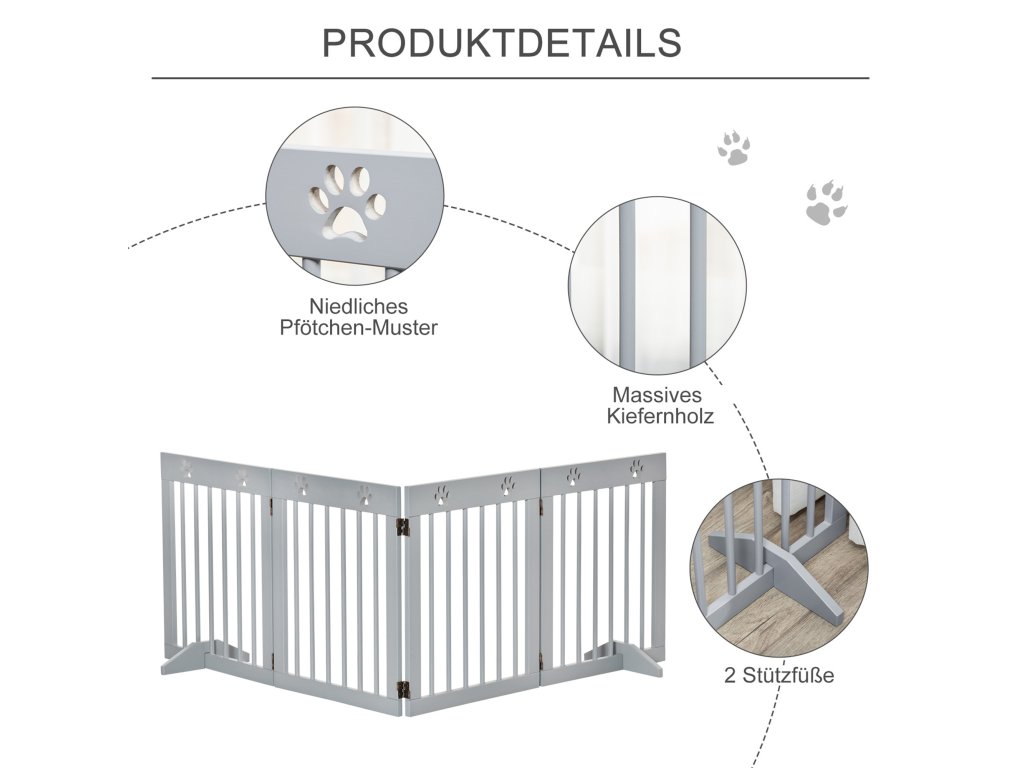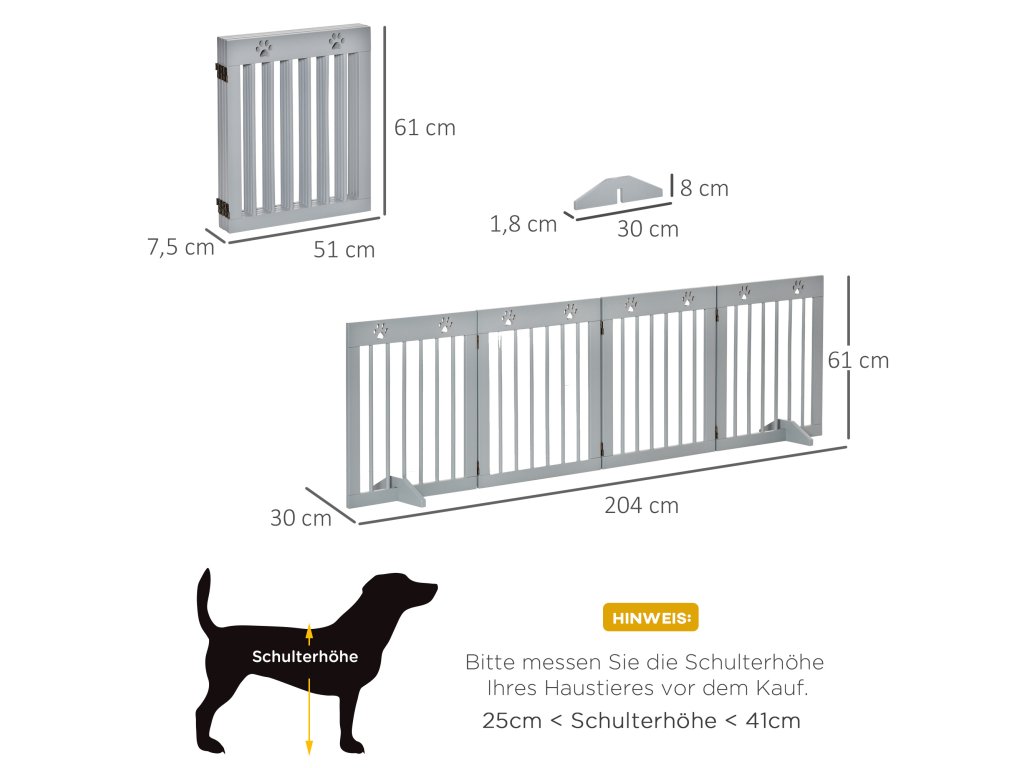 Zábrana pro psy čtyřdílná dřevěná skládací 51-204 x 61 cm šedá