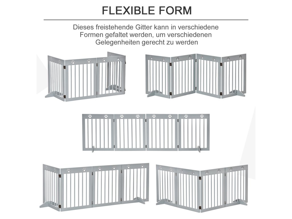 Objevte zábranu pro psy PawHut - ideální řešení pro bezpečné a účinné omezení poloměru pohybu vašeho domácího mazlíčka. Díky čtyřem flexibilním panelům MDF spojeným panty můžete ohradník ohýbat do různých tvarů podle potřeby. Když se nepoužívá, lze ji složit a ušetřit tak místo. Ideální pro dveře, schody a vchody. Chraňte své domácí mazlíčky a vytvořte bezpečné prostředí - jednoduše a stylově.