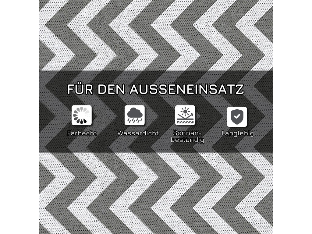 Dodejte své terase jistotu s tímto sofistikovaným oboustranným venkovním kobercem od společnosti Outsunny. Je nejen dekorativní a výjimečně pevný, ale také odolný vůči vodě a slunci. Skvěle se vyjímá také v obytném voze, pavilonu nebo zimní zahradě a stylově rozzáří atmosféru. Až se ho nasytíte, můžete koberec jednoduše otočit a nechat působit jiné barevné provedení.