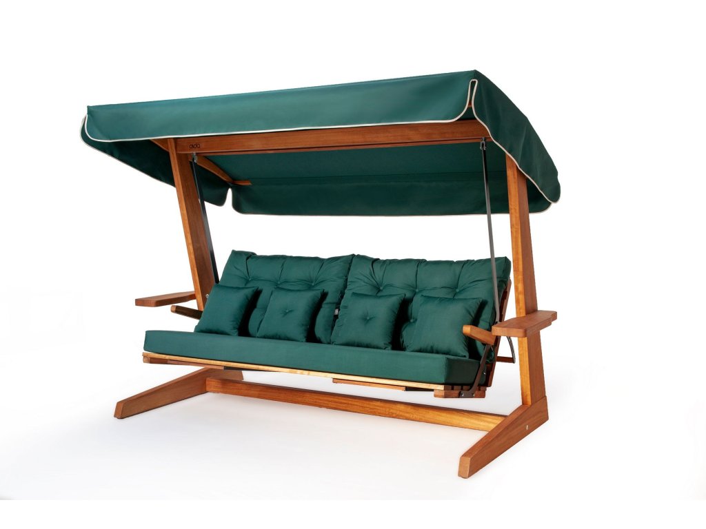 Zelená LUNA DELUXE 2600 je trojmístná luxusní zahradní houpačka se stříškou a s výsuvnými plochami na nohy.