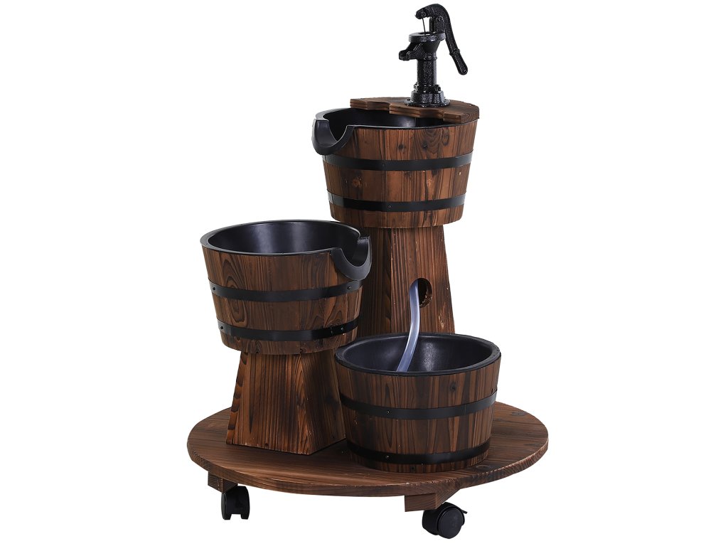 Naše klasická dřevěná sudová fontána s kohoutkem dodá vaší zahradě nádherný rustikální styl. Můžete se těšit jak z krásného rustikálního stylu, tak z jemných zvuků vaší osobní vodní oázy na zahradě. Fontána prošla karbonizační úpravou, která jí dodala zvětralý vzhled, ale vydrží dlouhá léta! Fontána musí být provozována pomocí elektrického čerpadla (je součástí dodávky). Stačí ji zapojit, naplnit vodou a užívat si krásu své osobní venkovní fontány!