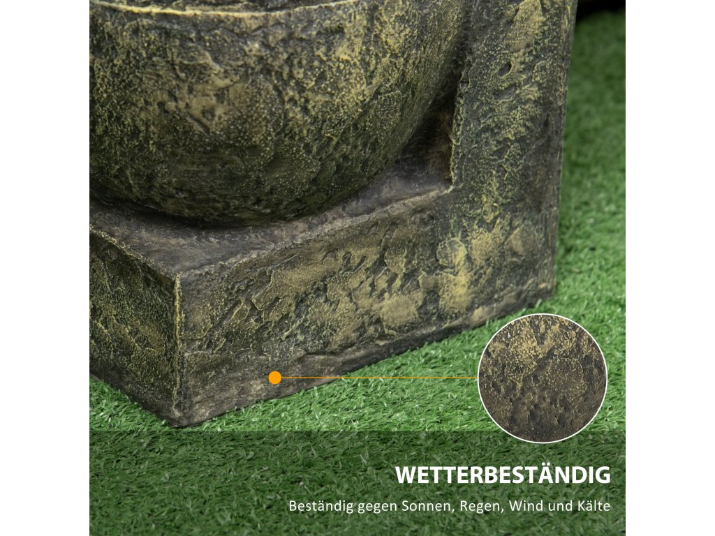 - Odolnost vůči povětrnostním vlivům: Naše zahradní fontána je vyrobena z pryskyřice odolné proti povětrnostním vlivům, aby odolala slunečním paprskům, dešti, větru i chladu. Materiál je stálobarevný a bude vaši zahradu zkrášlovat po dlouhá léta.
