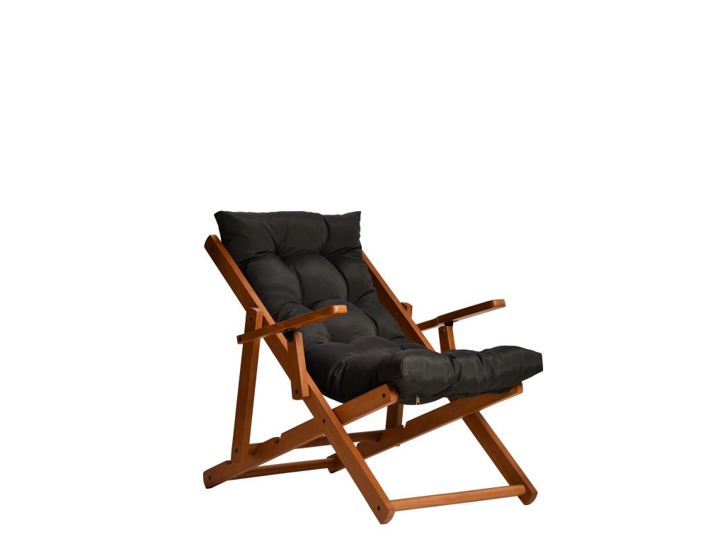 Praktické dřevěné lehátko REPOSE s antracitovým polštářem zaujme svým designem i možností výškového nastavení.