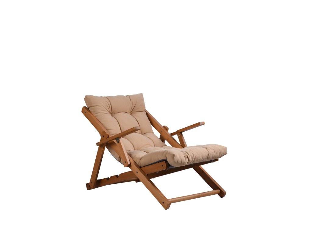 Praktické dřevěné lehátko REPOSE se hnědým polštářem zaujme svým designem i možností výškového nastavení.