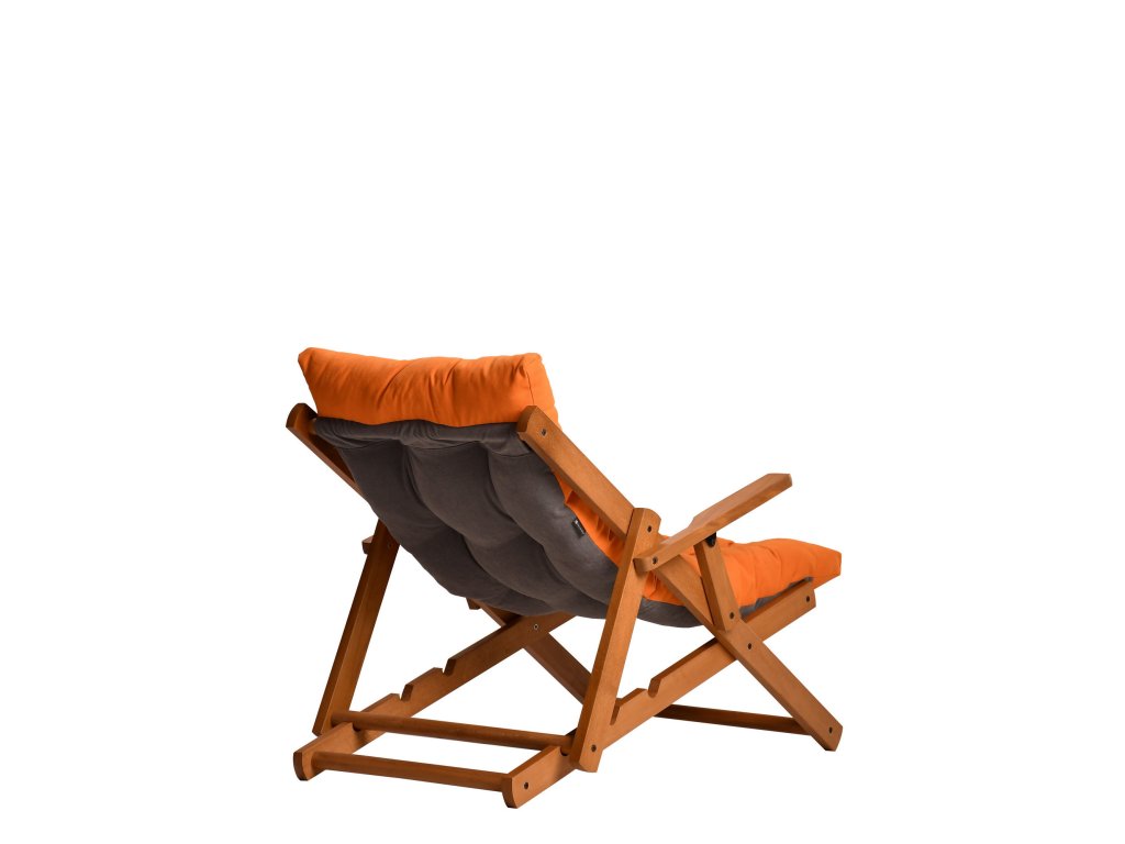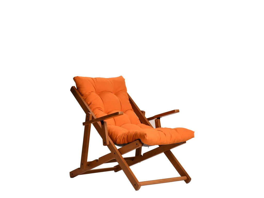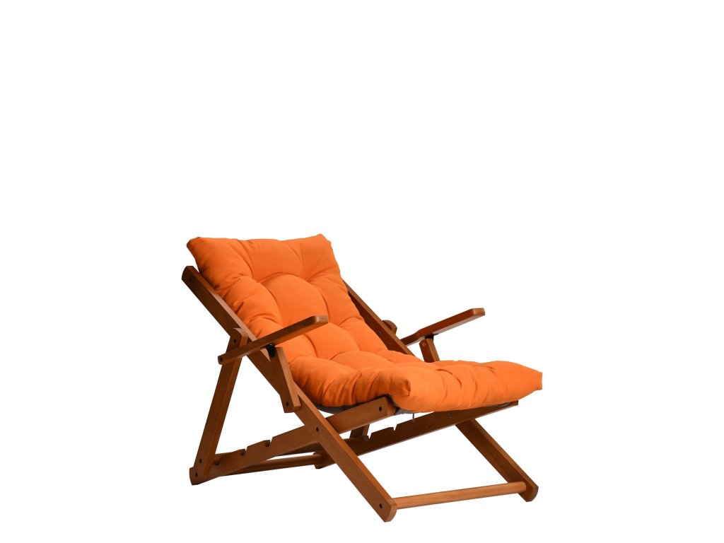 Praktické dřevěné lehátko REPOSE s oranžovým polštářem zaujme svým designem i možností výškového nastavení.