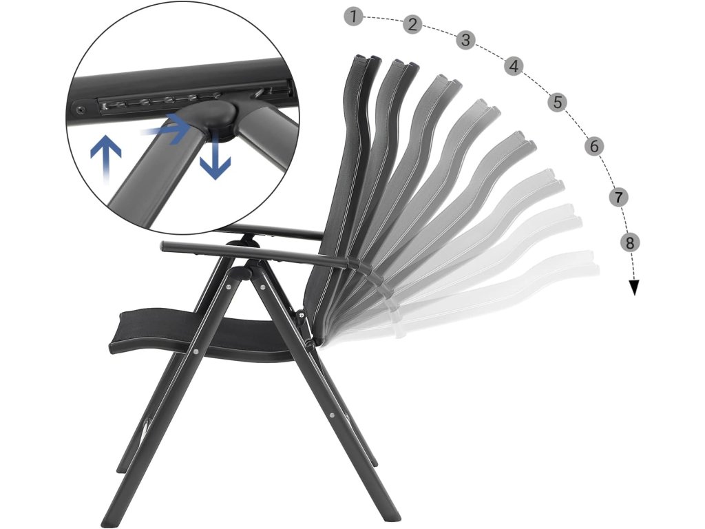 Opěradlo lze nastavit do 8 různých poloh! Opěradlo je navíc v horní části mírně prohnuté pro optimální podporu krku. Tato zahradní křesla jsou ideální pro zdřímnutí nebo čtení knih.