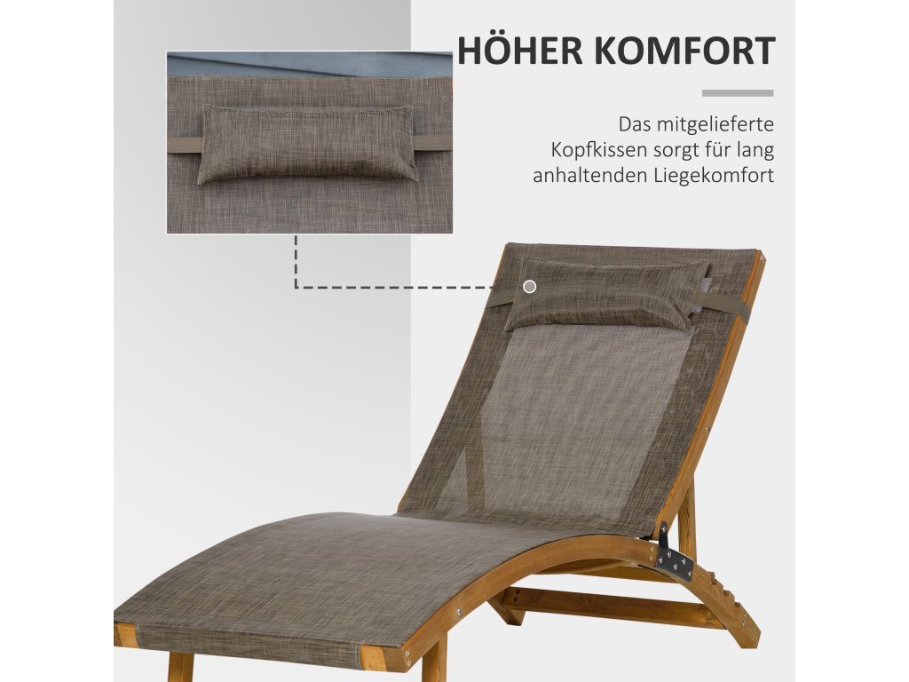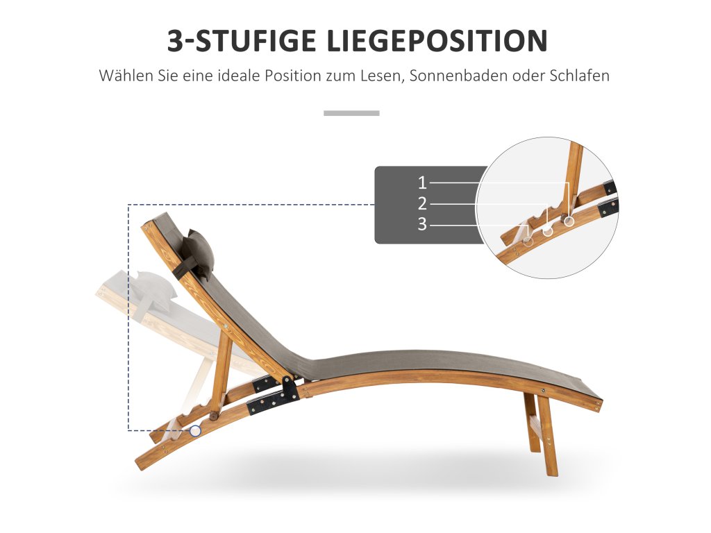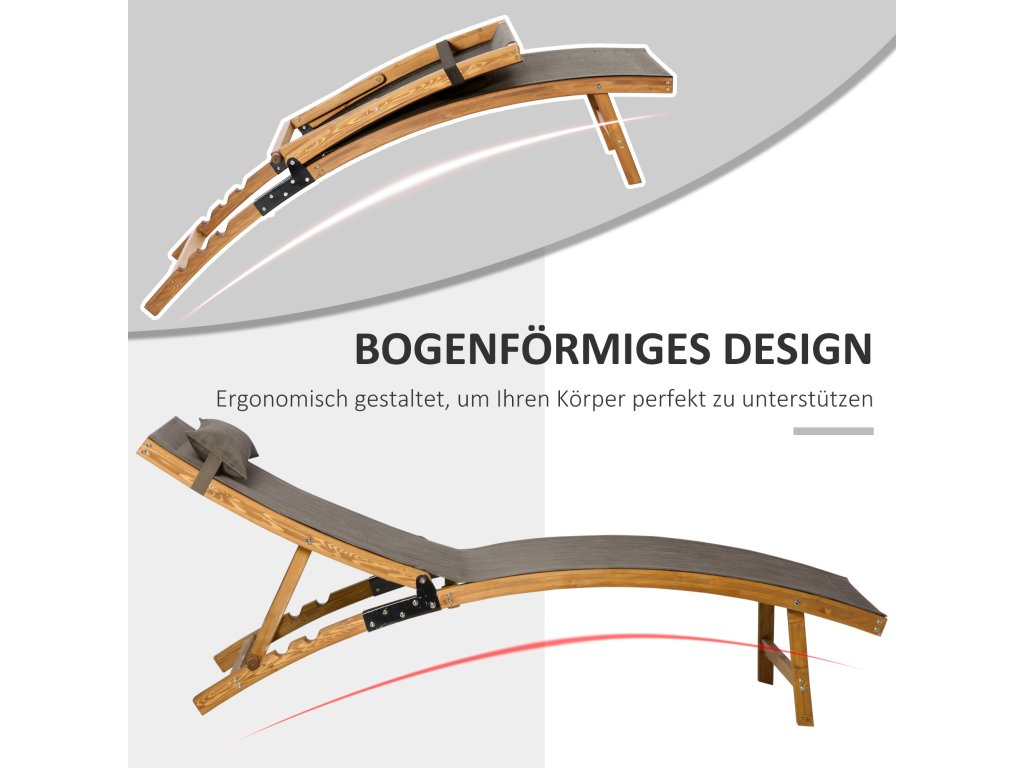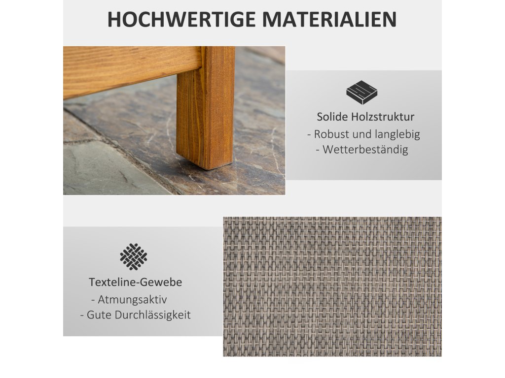 Na tomto kempingovém lehátku od společnosti Outsunny si můžete užívat čerstvého vzduchu a slunečních paprsků na zahradě. Rám z masivního dřeva snadno unese až 120 kg. Díky třístupňově nastavitelnému opěradlu si můžete nastavit svou oblíbenou polohu. Zakřivené opěradlo se dobře přizpůsobí tvaru vašeho těla. Vrchní materiál ze síťoviny optimálně podpírá a drží vaše tělo, zatímco vy odpočíváte a relaxujete.
