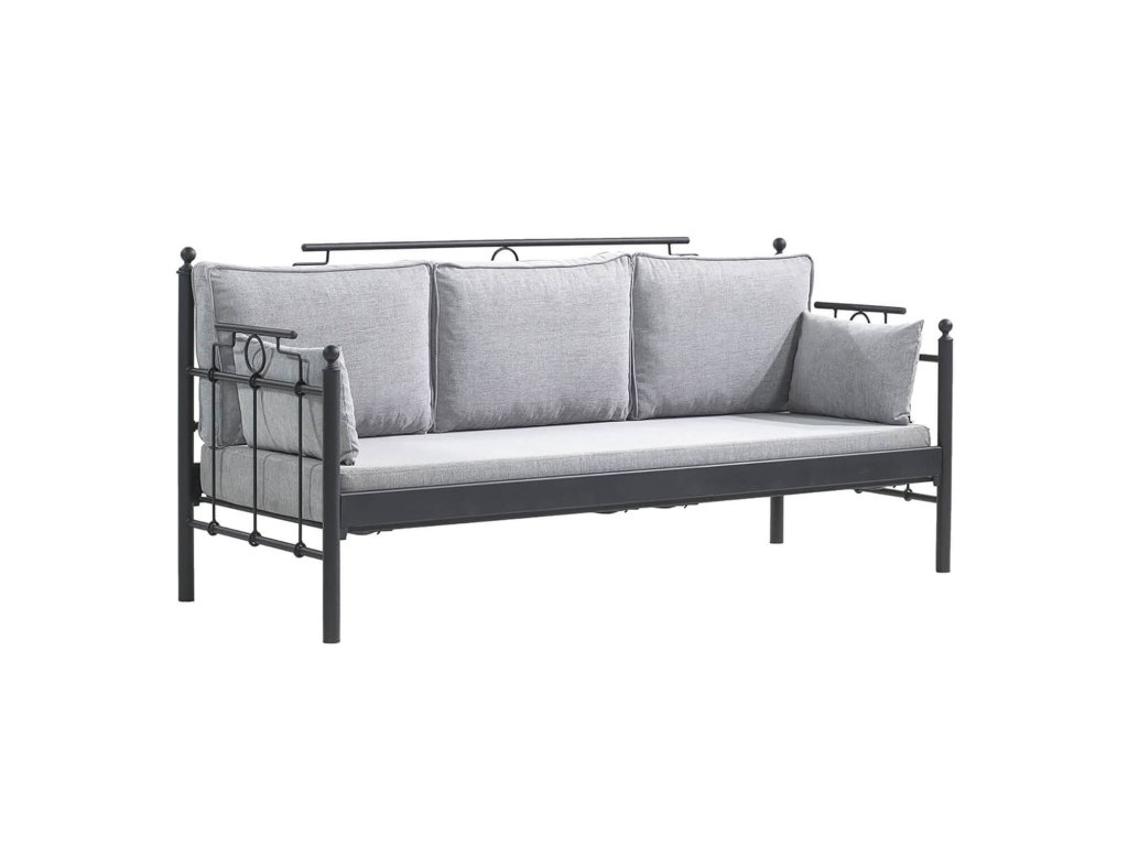 Zahradní pohovka trojmístná HATKUS je vyrobená z černého rámoví a šedého polstrování.