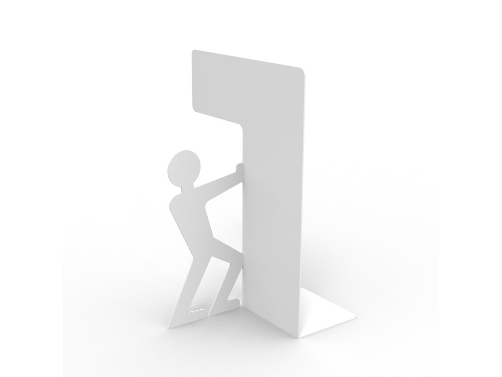 Kovová zarážka na knihy s motivem panáka v bílé barvě.