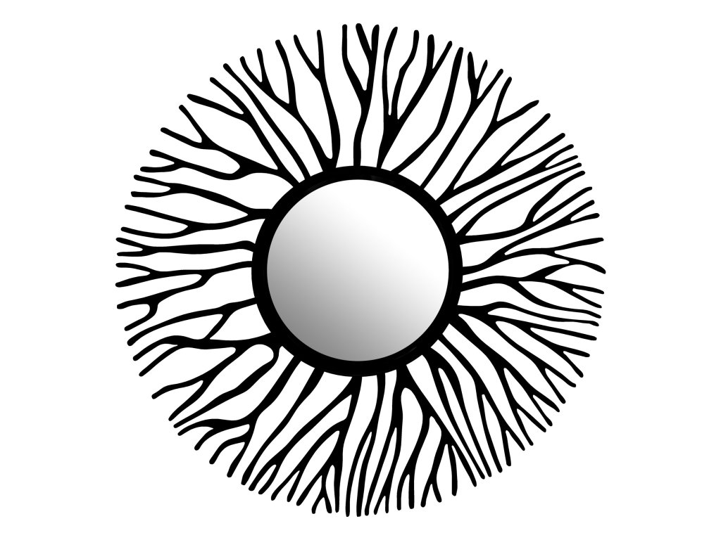 Kruhové 2 mm silné zrcadlo je zasazeno do kovové spleti drátů, tvořících kolem dokola něco jako větvičky nebo okvětní lístky a celkový vzhled působí nanejvýš elegantně.